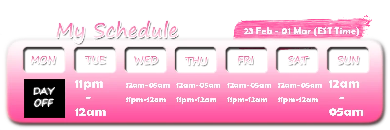 Erotisk dans, Oljeshow, Spanking, Fotfetish, Twerk, Toppløs, Stripping, Onaneringsinstruksjon, Handjob, Onani, Orgasme, Blowjob, Sprut, Cumshot, Anal, Ahegao, Analleketøy, Creampie, Doggy style, Fingring, Sexleketøy, Kukkvurdering, Deepthroat, Dildo eller vibrator